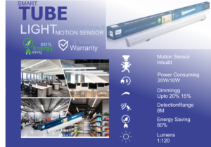A motion sensor tubelight is a smart lighting fixture designed to enhance energy efficiency and convenience by automatically responding to movement. It features a built-in motion sensor that detects motion within a specified range. When someone enters this detection zone, the light turns on instantly, providing illumination. After a set period of inactivity or once no further movement is detected, the light either turns off or dims to save energy. This feature makes it ideal for areas where lighting is only occasionally required, such as hallways, garages, or bathrooms, reducing unnecessary energy consumption and increasing convenience.