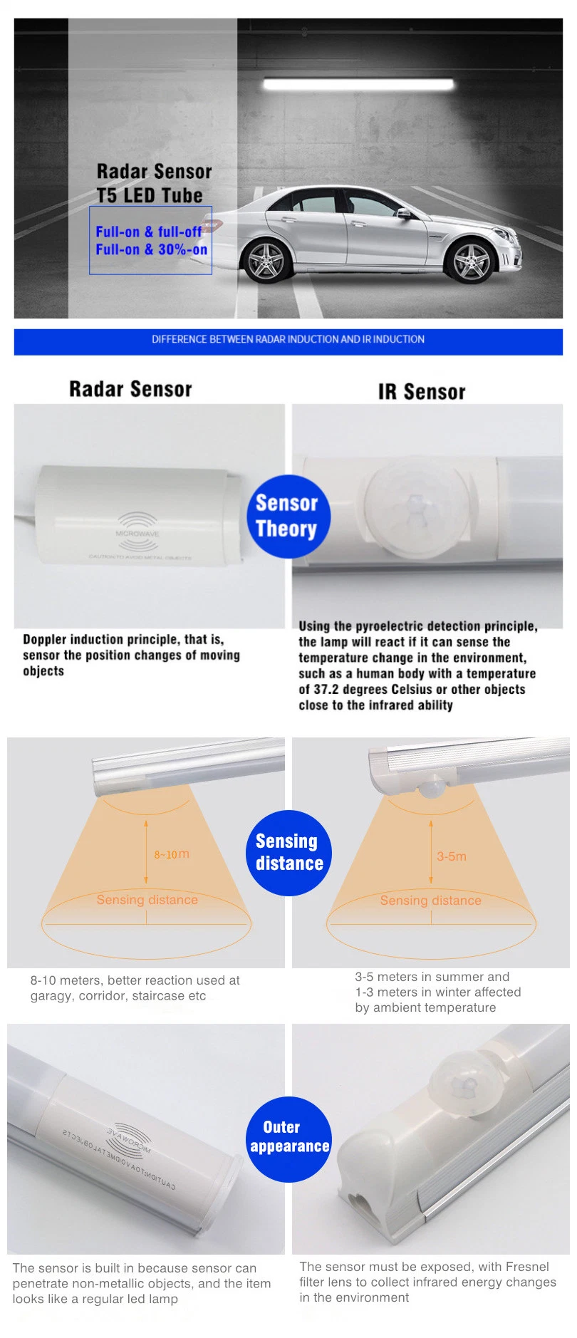 Intergrated with fixture tube for garage lighting AC85-265V 3years warranty t5 motion sensor tube light led