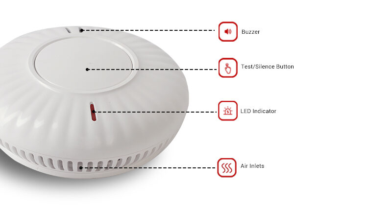 Loud Voice & More Durable Big button for test and hush monthly CE EN14604/AS3786/Rohs certified Private model. Name the location of the detector. 10 years stand-alone smoke alarm, Remotely Test and hush from App. Permanent carbon monoxide sensor Notification from a Phone call or SMS Remotely silence from the mobile phone. Self-checking automatically every 24 hours. Google Home/Amazon Alexa/IFTTT compatible. Family group management—Share this device with your family members. Note needs to be used with Zigbee Hub.