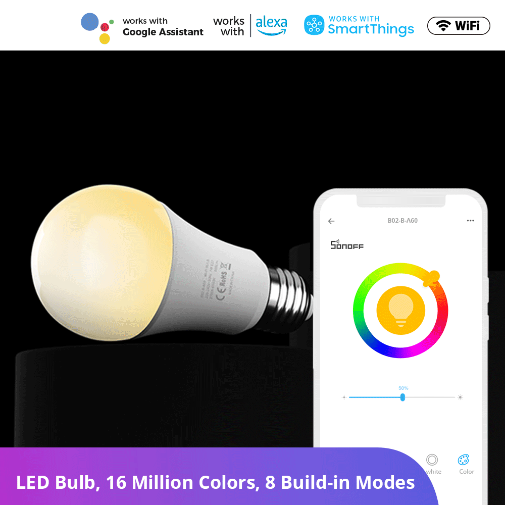 Want to adjust the color and brightness of the light in the scene mode? Try this SONOFF B02-BL/B05-BL Wi-Fi smart LED bulb, support APP control, voice control, and scene mode, and provide comfortable lighting with saving energy.