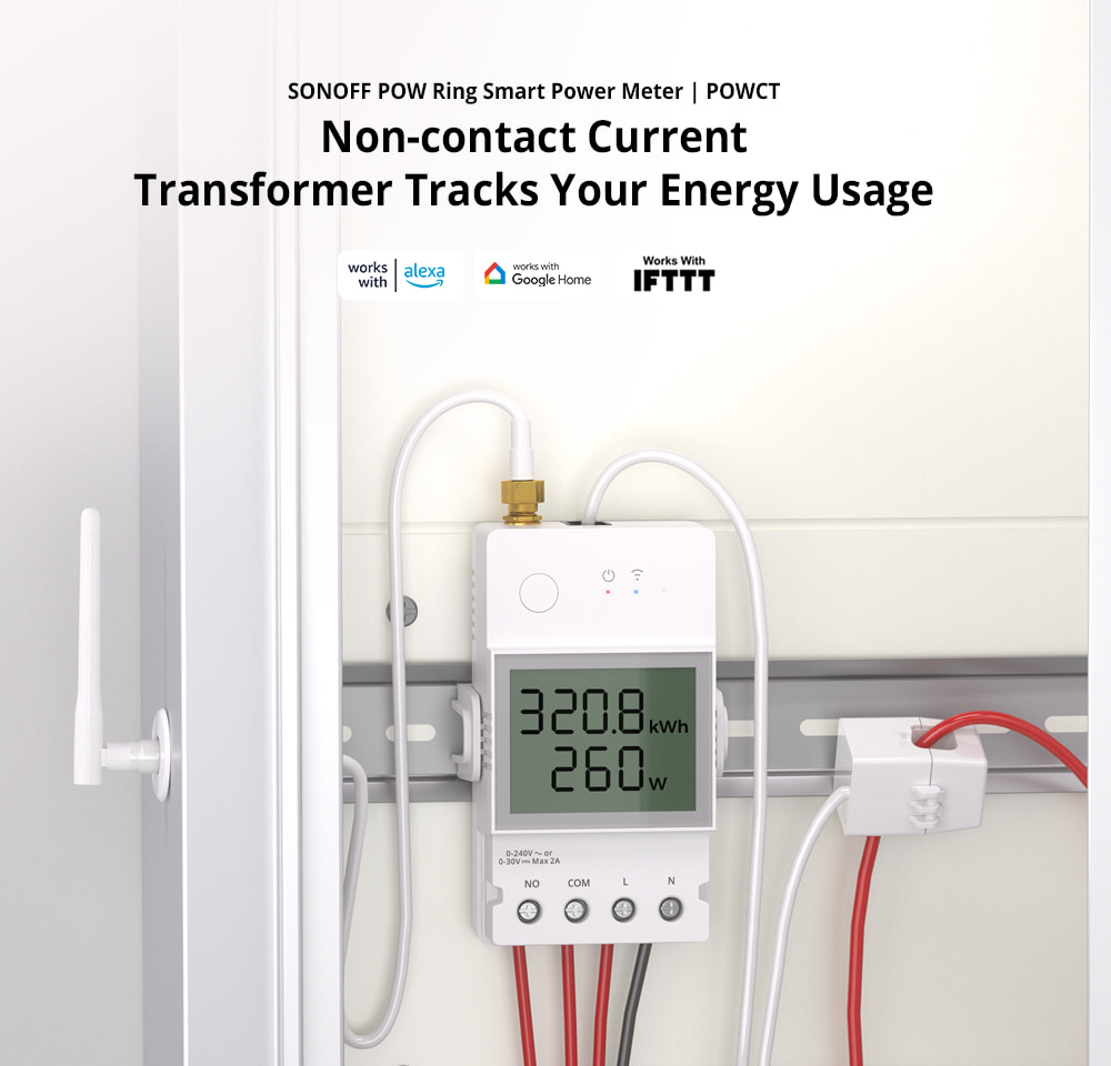 SONOFF POWCT is a Wi-Fi product that combines smart switch modification, antenna, and current transformer. Enhance your safety and flexibility with the Split CT sensor. By eliminating physical contact with live wires, it eliminates the risk of electric shock. Simply release or close the latches on the side for easy access. With transformer current detection up to 100 A, install in the electrical circuit panel of your home to monitor the power consumption of household appliances or rooms.