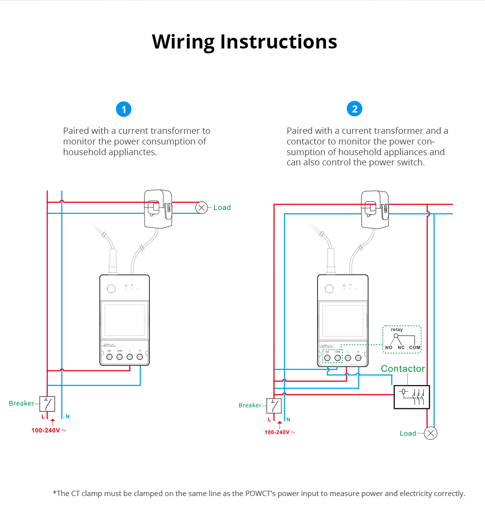【Split Core Current Transformer Clamp】Transformer current detection up to 100 A. No physical contact with live wires, eliminating the risk of electric shock. Just release or close the latches on the side of the sensor to open and close the CT sensor. 【Energy Monitor】 Install in the electrical circuit panel of your home to monitor the power consumption of household appliances or rooms. 【6-month Historical Data Hold】Automatically save your electricity usage data when you remove appliances or have a power outage. The data can be saved for up to 6 months and exported to a file for viewing. 【Support Contactor Control】POWCT…
