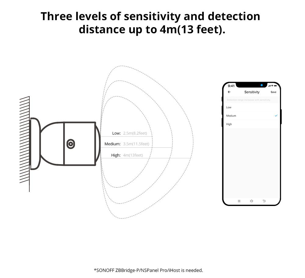 Besides, SNZB-06P has three levels of sensitivity, up to 4m(13 feet) detection distance. And it has multiple installation options, like magnetic attraction, stick with 3M Adhesive or screw, you can put it anywhere you need.